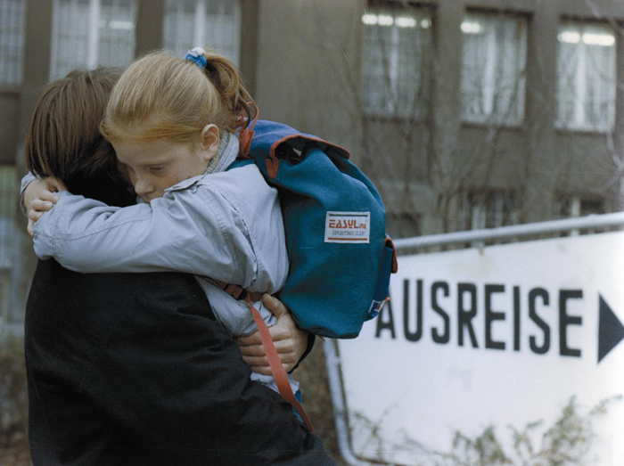 The Architects (Die Architekten), directed by Peter Kahane, 1990 This is the moment when the main protagonist in the East German film The Architects says goodbye to his wife and daughter who received permission to escape to the West. In the background you see a sign that says ‘Ausreise’, or ‘Emigration’, a word so rarely…