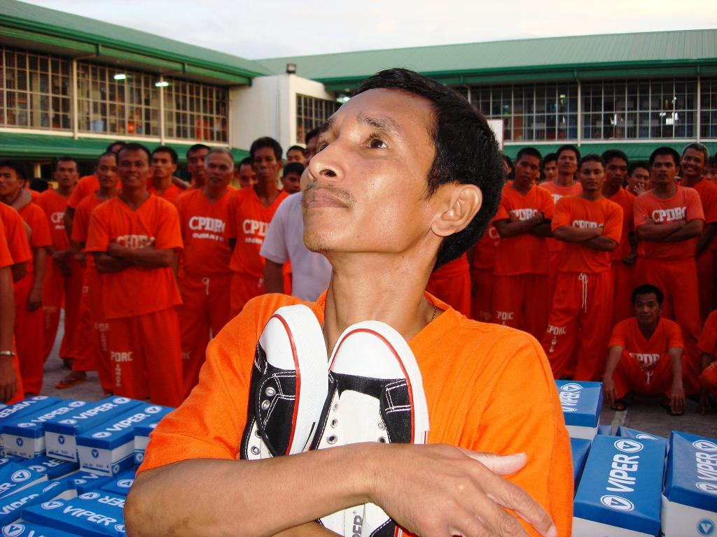 A new set of images, all featured on Byron Garcia’s website, depicts a complete reversal of the prisoners’ lifestyle under the new regime. Undoubtedly, it is an image that Garcia is keen to foster as he depicts himself as heroic intervener. It would be too easy however to dismiss Garcia’s efforts as a publicity stunt. The introduction of shoes (even though they were missing laces) appears to mark a significant moment in the inmates’ lives. Importantly, and maybe this constitutes a wider master plan for the running of CPDRC, the shoes would of course feauture again in the prison dance to Michael Jackson’s ‘Thriller’.