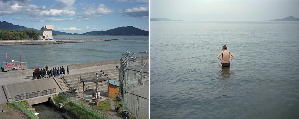 In his book Umimachi, or literally ‘Ocean Town’ or ‘Sea Town’, the photographer Koji Onaka photographed the Sanriku district, which was badly affected by the tsunami, between 1991 and 1993 (Onaka now sells these photographs to raise funds for children orphaned by the disaster). In the first instance, the photographs depict a sense of romance and nostalgia often associated with sea side towns in Japan. Similar to Shohei Imamura’s film Warm Water Under the Red Bridge, Onaka’s photographs depict a place essentially at peace with itself and its natural surroundings. To emphasise this sense of peacefulness, the photographs are also purposefully banal: boys playing baseball, girls waiting for the school bus, a bunch of fishermen cleaning their tools near the harbour. In the context of the 2011 tsunami, the images are haunting reminders that the tsunami flattened a strip of land photographers once recognised as beacon of peace and harmony. Here, the primary role of photography is as a medium of memory, allowing those who look at photographs to remember a place that does not longer exist.