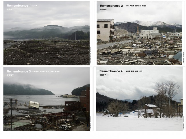 Sasaoka’s smartly references the notion of a changing landscape not only in the images that she takes, but also, in the very format these images are represented. As a member of the renown Photographers’ Gallery in Tokyo she frequently exhibits her work in the space of the gallery. However, apart from the classic exhibition format (large prints, wood frames, white cube space etc.), Sasaoka has created a series of foldout pamphlets that depict her working process as it continues to change. So far Sasaoka has created 27 pamphlets in this ongoing body of work. Not all pamphlets exclusively deal with landscapes affected by either the earthquake, tsunami or nuclear meltdown, though the title of the series ‘Remembrance’ clearly alludes to the sense of trauma that is revisited in the images and revisited in the viewer looking at the images.