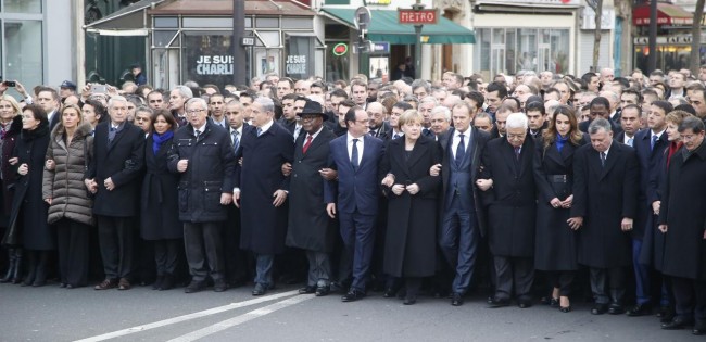 In the aftermath of the attacks on the Charlie Hebdo office and a kosher supermarket in Paris, the coming together of world leaders at the unity march in the French capital constituted a remarkable event in world history. Rarely before have so many heads of state been at the same place at the same time for an event other than a meeting at the UN or for the G7/8 and G20 summits. Photographs of the world leaders standing literally and figuratively shoulder-to-shoulder with François Hollande attempt to emphasize a sense of solidarity with the French people. Behind this group of powerful leaders, or so the viewer assumes, were millions of people marching in remembrance of the victims and to honor the tripartite motto that underpins the French Republic.